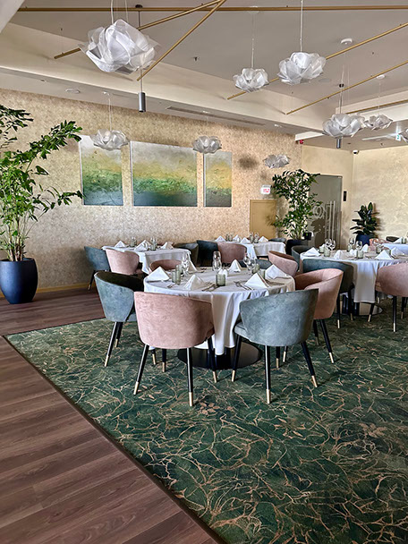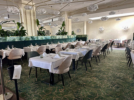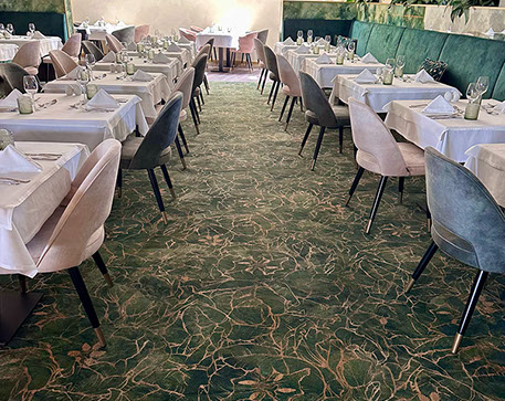 MEGNEVEZÉS: Le Primore Hotel & Spa Étterem MEGBÍZÓ: Le Primore hotel & Spa BEÉPÍTETT ANYAG: Gribon egyedi printelt szőnyeg