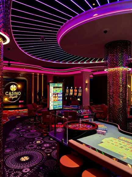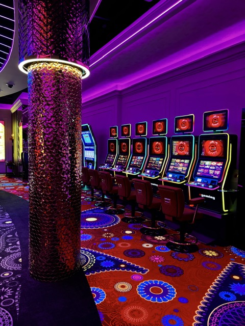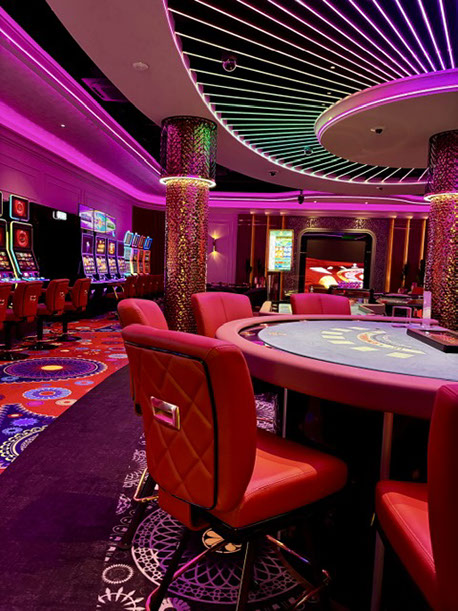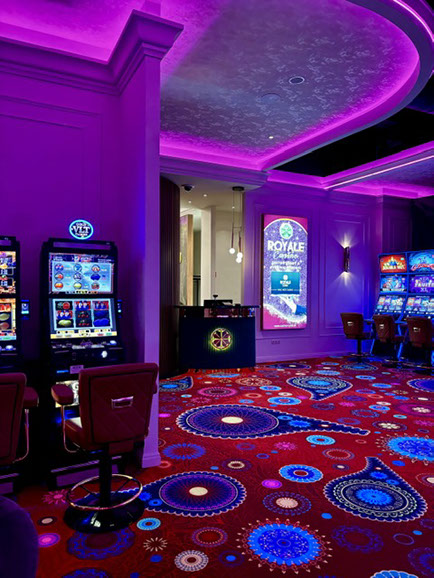 MEGNEVEZÉS: Casino Royale, Beladice MEGBÍZÓ: Casino Royale BEÉPÍTETT ANYAG: Egyedi tervezésű fluoreszkáló printelt szőnyeg