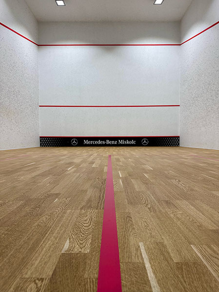MEGNEVEZÉS: M1 Fittnes Squash pálya KIVITELEZŐ: Peka Bau 2000 Kft. BEÉPÍTETT ANYAG: Boan Singflex Squash Sportparketta rendszer 68m2